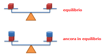 Per cogliere il significato dei due principi si può ricorrere al modello di una bilancia a due piatti. Se la bilancia è in equilibrio, sarà ancora in equilibrio aggiungendo o togliendo a entrambi i piatti lo stesso peso (primo principio).
