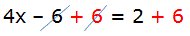 4x − 6 + 6 = 2 + 6