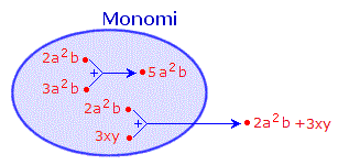 e il risultato è un monomio simile ai due addendi (è importante capire che, comunque si scelgano i valori di a e di b, l'espressione iniziale e quella finale assumono lo stesso valore).
