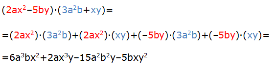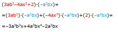 Il prodotto di un monomio per un polinomio (o di un polinomio per un monomio) è il polinomio che si ottiene moltiplicando il monomio per ciascun termine del polinomio. Ad esempio