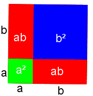 Giustificazione geometrica di questa regola: l'area del quadrato di lato (a+b) è uguale all'area del quadrato di lato a più l'area del quadrato di lato b più il doppio dell'area del rettangolo di dimensioni a e b.