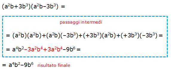 Il prodotto della somma di due monomi per la loro differenza