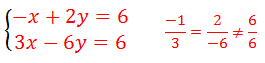 Le due rette sono parallele ma non coincidenti e quindi non hanno punti in comune. E ciò avviene sempre quando il rapporto fra i coefficienti di x è uguale al rapporto fra coefficienti di y ma non è uguale al rapporto tra i coefficienti dei termini noti: