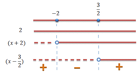 Il trinomio si annulla, quindi, per x = -2 oppure per x = 3/2 ed è scomponibile in fattori lineari: