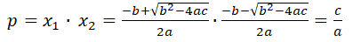 Il prodotto delle radici è uguale al rapporto tra i coefficienti c e a.