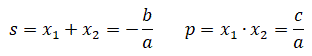 Se il discriminante, di un'equazione di secondo grado, non è negativo dalla formula risolutiva possiamo ottenere altre due utili relazioni che legano le radici x1 e x2 con i coefficienti a, b, c dell'equazione in forma normale.