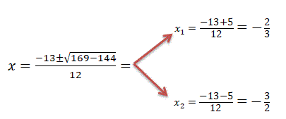 L'equazione associata 6x2 + 13x + 6 = 0 ha il discriminante positivo Δ=169−144=25 e quindi ha due soluzioni reali: