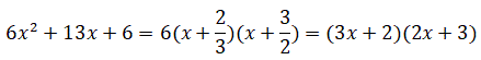 Ad esempio, scomponiamo in fattori di primo grado il trinomio 6x2 + 13x + 6