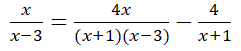 Eliminiamo i denominatori moltiplicando entrambi i membri per il denominatore comune (x + 1)(x − 3).
