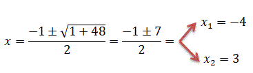 Essendo il discriminante positivo applichiamo la formula risolutiva per determinare i due valori dell'incognita.