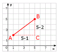 Possiamo ora affrontare facilmente il caso generale: il segmento AB non è necessariamente nè orizzontale nè verticale. Ad esempio, calcoliamo la lunghezza del segmento AB con A(1, 2) e B(5, 5).