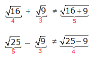 Osserviamo, prima di tutto, che in generale per la somma algebrica non valgono le proprietà analoghe a quelle relative alla moltiplicazione e alla divisione fra radicali. Ad esempio