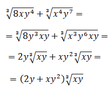 La somma algebrica di due o più radicali simili è un radicale simili, agli addendi, che ha come coefficiente la somma algebrica dei coefficienti.