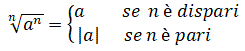 La radice n-esima della potenza n-esima di un numero reale è il numero reale stesso se n è dispari, è il valore assoluto del numero reale stesso se n è pari.