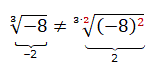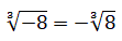 otteniamo due radicali non equivalenti. Se però il radicando è negativo e l'indice del radicale è dispari possiamo trasformare il radicale iniziale in un radicale ad esso equivalente ma con il radicando positivo trasportando il segno meno fuori dalla radice; ad esempio