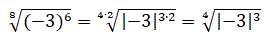 Questa scrittura, però, non è equivalente al radicale iniziale anzi per definizione non è neppure un radicale perchè (−3)3 è un numero negativo e l'indice del radicale è pari. Come si può correggere l'errore? Essendo pari l'esponente del radicando possiamo considerare −3 in valore assoluto e quindi scrivere correttamente