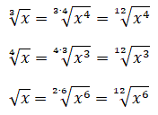 Applichiamo la proprietà invariantiva in modo che tutti i radicali abbiano per indice 12.