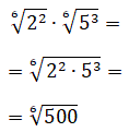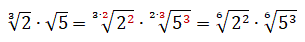 Il prodotto di due radicali con lo stesso indice è un radicale che ha per indice lo stesso indice e per radicando il prodotto dei radicandi.