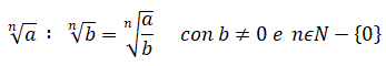 Il quoziente di due radicali con lo stesso indice è un radicale che ha per indice lo stesso indice e per radicando il quoziente dei radicandi.