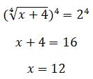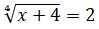 Essendo il secondo membro un numero maggiore di zero c'è sicuramente concordanza di segno e quindi la condizione di accettabilità è x ≥ -4. Eleviamo entrambi i membri alla quarta potenza e risolviamo l'equazione razionale ottenuta.