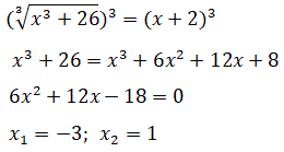 In questo caso non c'è nessuna condizione di esistenza per il radicale perchè la radice cubica di un numero reale esiste sempre e ha lo stesso segno di quel numero. Eleviamo entrambi i membri alla terza potenza e risolviamo l'equazione razionale ottenuta
