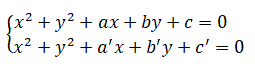 x2 + y2 + ax + by + c = 0;   x2 + y2 + a'x + b'y + c' = 0