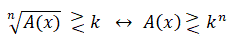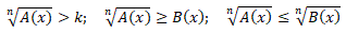 Se k è un numero non negativo affinchè la disequazione abbia senso occorre imporre la condizione di esistenza della radice e cioè A(x) ≥ 0. Con questa condizione i due membri della disequazione sono entrambi non negativi. Elevando alla potenza n-esima i due membri si ottiene la disequazione razionale:
