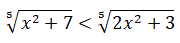 Essendo dispari gli indici delle radici non bisogna porre nessuna condizione ai due radicali. Elevando alla potenza n-esima entrambi i membri si ottiene una disequazione razionale equivalente: