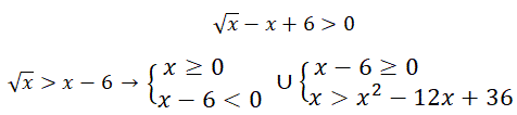 Pertanto la disequazione irrazionale è equivalente all'unione dei due sistemi: