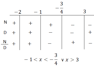 Che sono verificati per x < -1 ∨ x > 3.