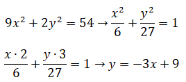 Ad esempio, troviamo l'equazione della tangente all'ellisse9x2 + 2y2 = 54
