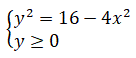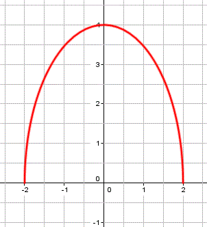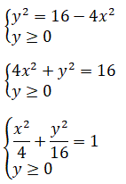 Ora, nel sistema l'equazione rappresenta un'ellisse con i fuochi sull'asse y e semiassi a=2 e b=4, mentre la disequazione rappresenta una condizione: l'ordinata deve essere maggiore o uguale a zero. Per cui il grafico della funzione irrazionale è la semiellisse rappresentata in figura.
