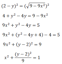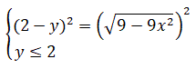 l'equazione di un'ellisse traslata di due unità verso l'alto con i fuochi sull'asse y e semiassi a=1 e b=3. Tenendo conto che la disequazione impone che l'ordinata sia minore di 2 si ottiene la semiellisse rappresentata in figura.