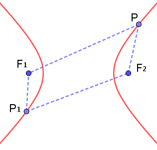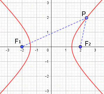 Da un punto di vista geometrico l'iperbole è il luogo dei punti P del piano per i quali è costante la differenza delle distanze da due punti fissi F1 e F2 detti fuochi.