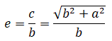 Il rapporto fra la semi distanza focale e la semi lunghezza dell'asse traverso dell'iperbole è detto eccentricità ed è indicato con la lettera e: