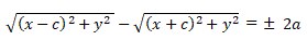 rappresenta l'equazione dell'iperbole con i fuochi appartenenti all'asse x. Questa equazione può essere resa più semplice eliminando le radici elevando più volte entrambi i membri al quadrato. In questo modo si ottiene l'equazione:
