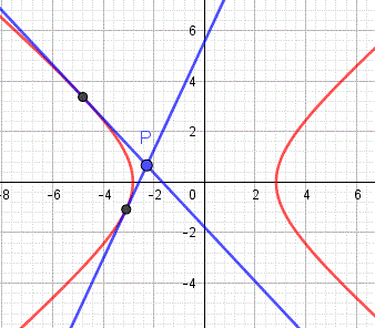 se P è esterno all'iperbole si possono tracciare due rette tangenti
