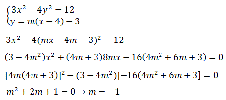 Δ = (-8m2 - 16 m)2 - 4(3 - 4m2)(-4m2 - 16m - 28) = 0