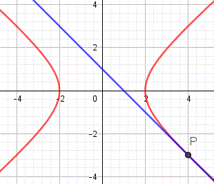 Ad esempio, applicando questa formula, possiamo determinare direttamente l'equazione della retta tangente all'iperbole 3x2 - 4y2 = 12 passante nel suo punto P(4, -3) dell'esempio precedente: