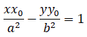 Nel caso in cui il punto P(x0, y0) appartenga all'iperbole si può usare la formula di sdoppiamento che permette di ottenere direttamente l'equazione della retta tangente all'iperbole in quel punto utilizzando l'equazione: