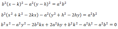 Ponendo A=b2, B=-a2, C=-2b2k, D=+2a2h, E=b2k2-a2h2-a2b2 otteniamo l'equazione dell'iperbole traslata: