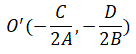 Le coordinate O'(k, h) del centro dell'iperbole traslata in funzione dei coefficienti dell'equazione di secondo grado dell'iperbole sono: