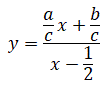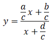 L'equazione della funzione omografica è del tipoe essendo c≠0 possiamo dividere numeratore e denominatore per c: