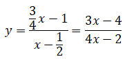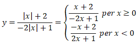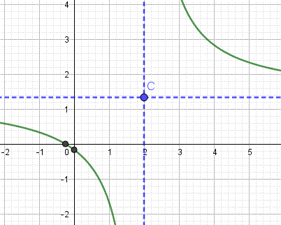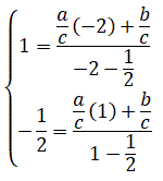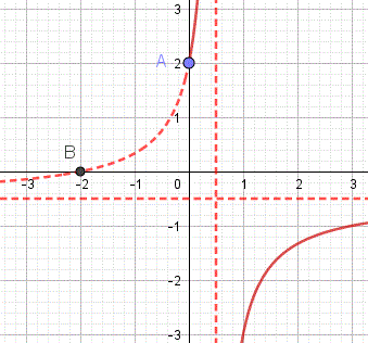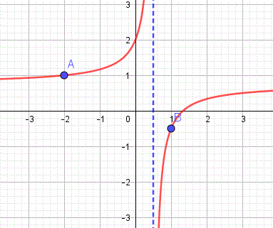 Esempio 3: Determiniamo l'equazione della funzione omografica passante per i punti A(-2, 1) e B(1, -1/2) e con asintoto verticale x = 1/2.