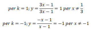 cioè l'equazione della retta y=1 privata del punto (1/3, 1) oppure l'equazione della retta y=-1 privata del punto (-1, -1).