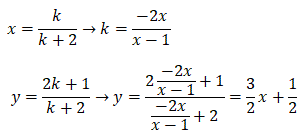I punti base sono quindi A(1/3, -1) e B(-1, 1). Determiniamo il luogo dei centri di simmetria. Ricaviamo k in funzione dell'ascissa e sostituiamolo nell'ordinata delle coordinate dei centri di simmetria.