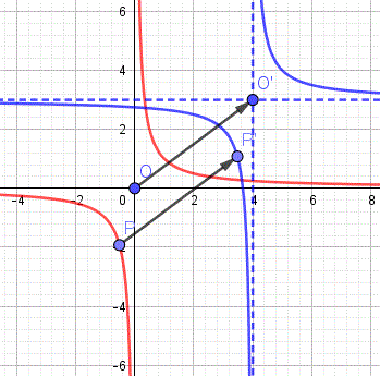 Esempio 1: Deteminiamo l'equazione dell'iperbole che si ottiene traslando con vettore v(4, 3) l'iperbole equilatera di equazione xy = 1.