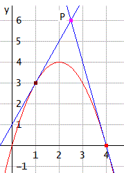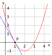 Determiniamo il coefficiente della retta tangente alla parabola nel punto P:m = (2ax0 + b) = (2 ⋅ 2 ⋅ 2 - 4) = 4
