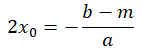 Affinchè la retta sia tangente alla parabola, l'equazione risolvente deve avere due radici reali coincidenti e tali radici devono essere uguali a x0. Ora, sappiamo che, in un'equazione di secondo grado la somma delle radici è uguale all'opposto del rapporto tra secondo e primo coefficiente, cioè: