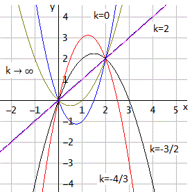 Per k=-2 si ha:-y + x = 0 parabola degenere rappresentata dalla bisettrice del primo e terzo quadrante.